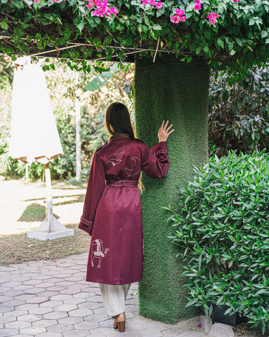 The Town Beige Trench Coat - Dark Grey Town Silk Screen Print