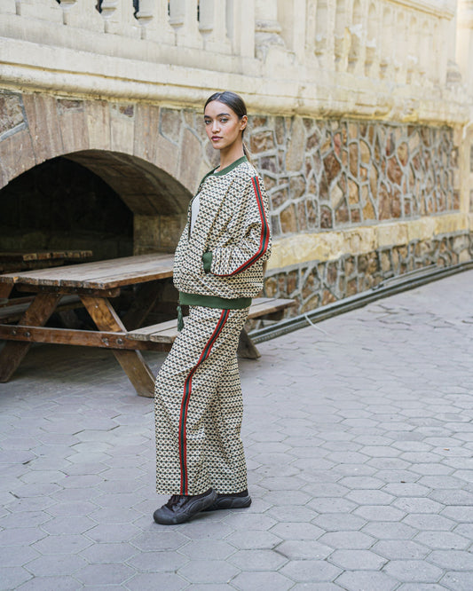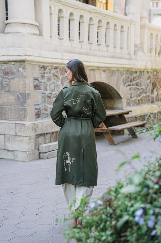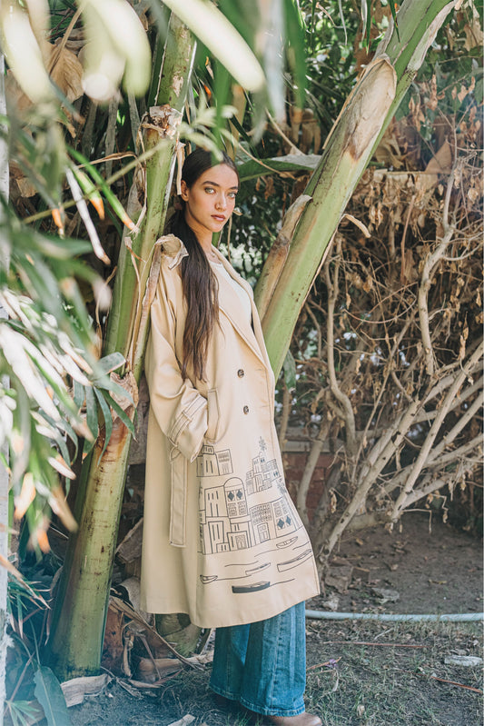 The Town Olive Trench Coat - Beige Town Silk Screen Print